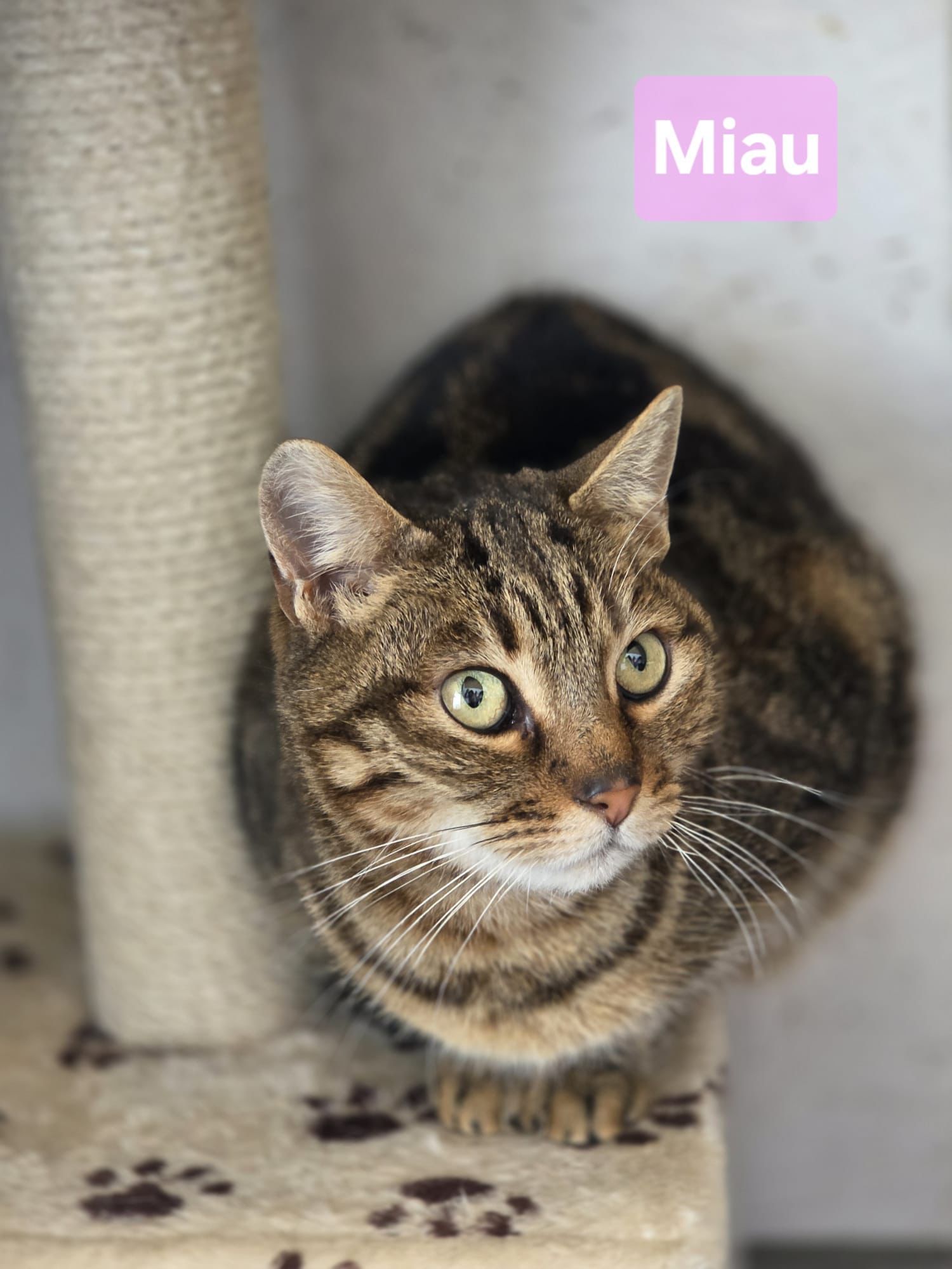 Miau, een lief cypers poesje van 1 jaar. Miau is sinds kort in Nederland en ze is te bezoeken bij haar opvang in Alphen aan de Rijn.